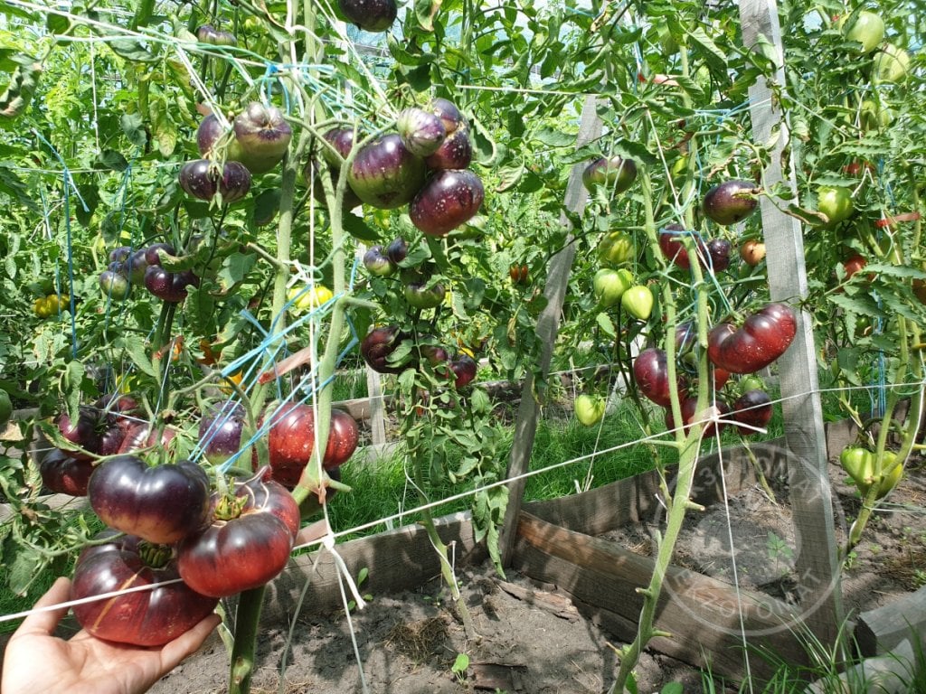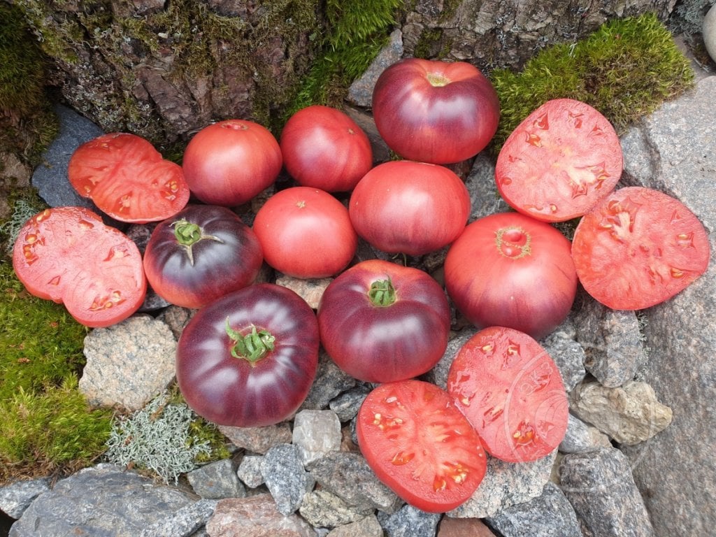 6. Цвет томатов: основной цвет красный, даже больше темно-малиновый. Но под ярким солнцем плоды окрашиваются в темно-синий, антоциановый цвет, который и делает их не только привлекательными, но и более полезными для здоровья.
