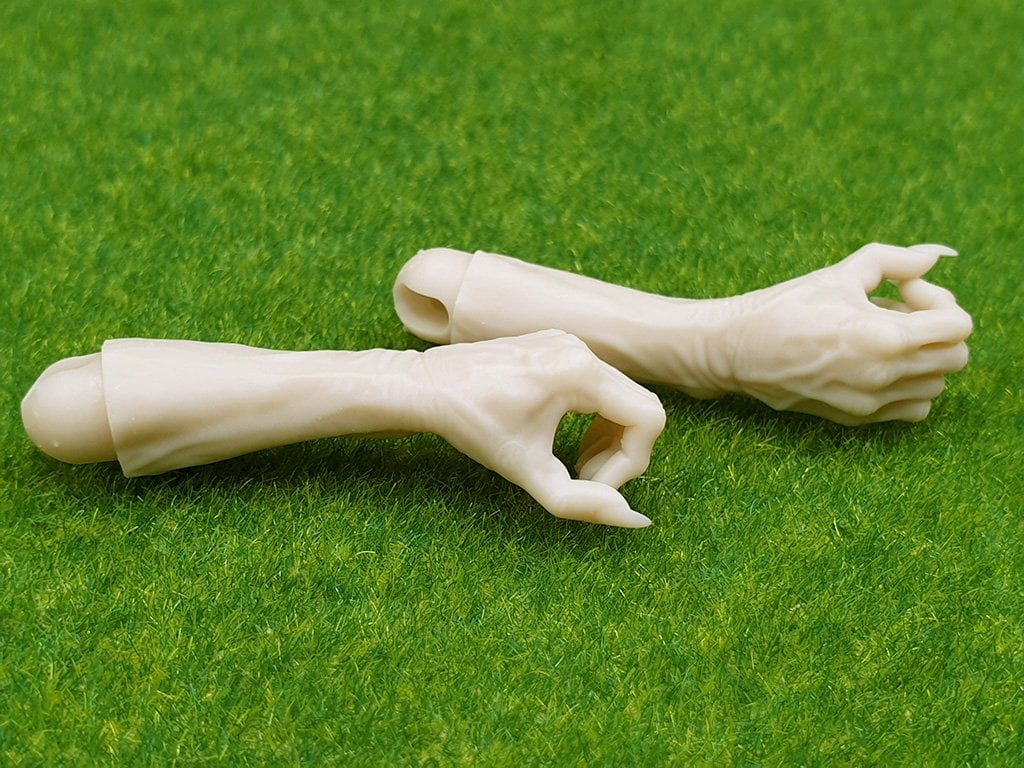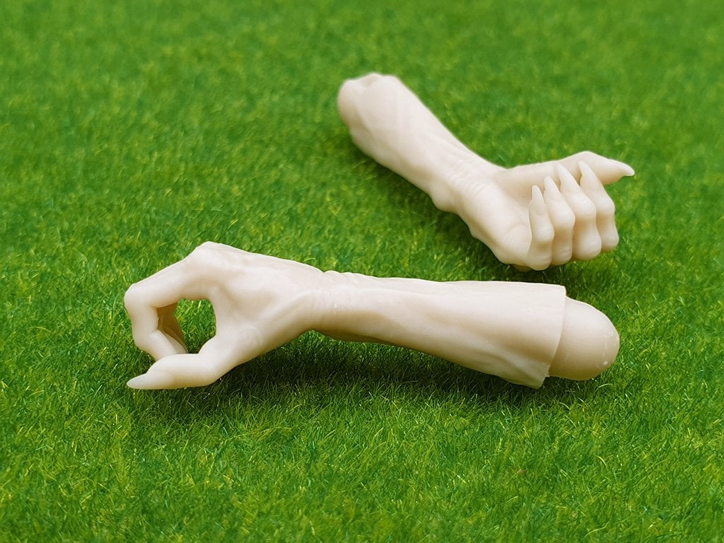 Эта модель разработана специально для удержания предметов в вертикальном положении. Пальцы с длинными когтями образуют аккуратное кольцо-захват, в которое легко вставляется палочка, черенок или стебель перпендикулярно руке. Идеально подходит для фигурок, которые на что-то опираются или держат высокий предмет перед собой.