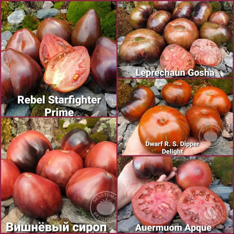 3. Сорт томата "Rebel Starfighter Prime" - высокие, темно-малиновые с зелеными полосами и ярким антоцианом, сердцевидные, 100-200 грамм.