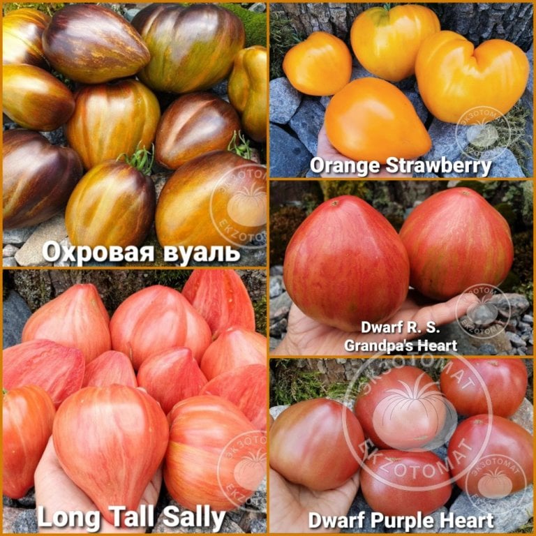 В набор входят 3 высокорослых и 2 низкорослых сорта с самым лучшим вкусом и сердцевидной формой плодов. Текстура мякоти маслянистая, нежная, сочная. Вкус и аромат яркие, сладкие с приятной кислинкой. Это те сердцевидные сорта, которые наши клиенты часто берут в свои заказы.