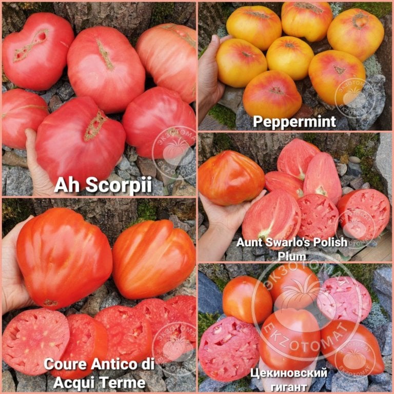 В набор входят 5 высокорослых сортов томатов с крупнейшими плодами, сахаристой, густой мякотью и малым количеством сока. Взял в руку - имеешь вещь! Их не только приятно порезать в салат, но и слайсами на хлебушек, приготовить густые соусы. Томаты, где больше всего "мяса", а не шкурки, семян и сока. Каждый раз, когда срываешь такого великана, относишься с благоговением и чувством полного удовлетворения.