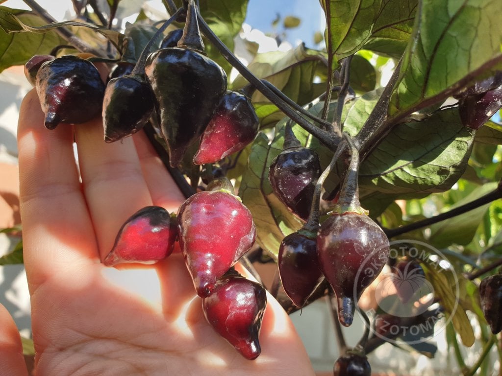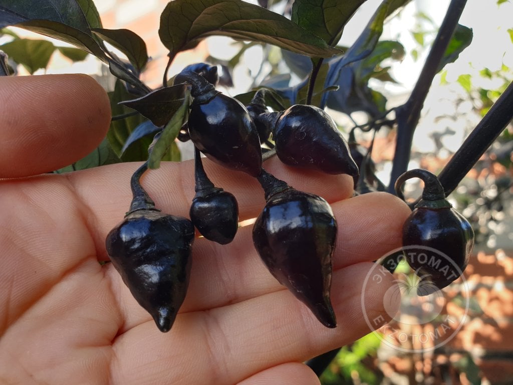 Этот красавец пополнил нашу коллекцию Бикиньо и все лето выглядел очень привлекательно. Все, кто заходили к нам в гости, удивлялись этому перцу! Что это такое необычное? Он весь черный!)