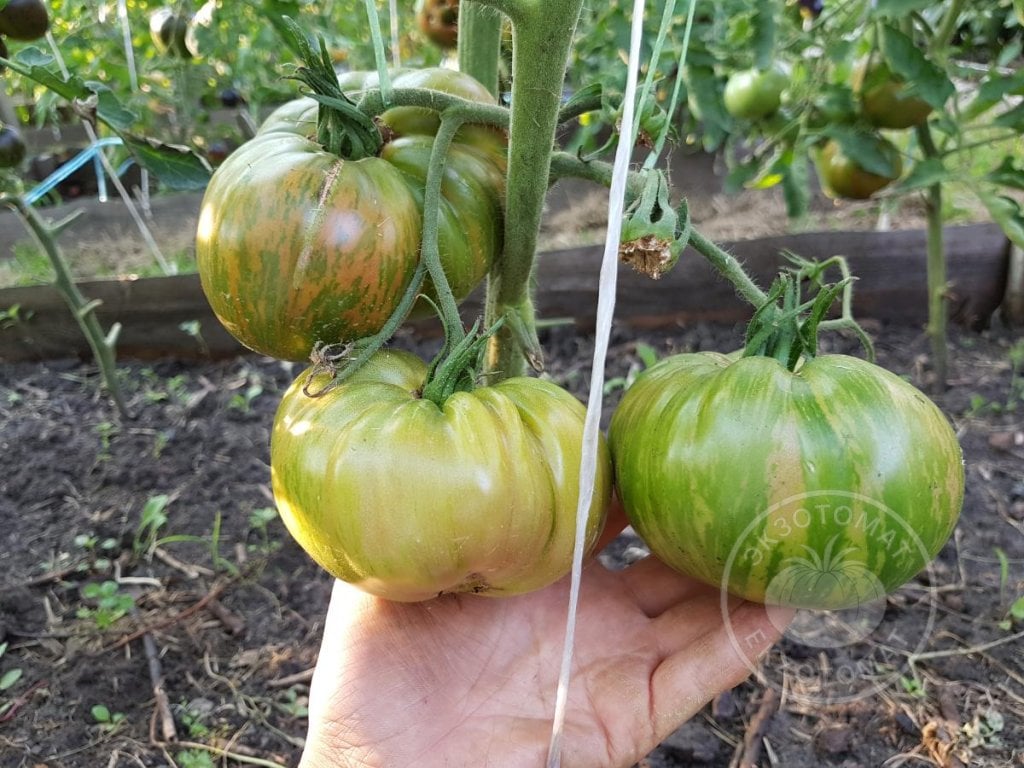 2. История: в 2004 году скрещивание провёл Том Вагнер, селекционер из США. Родительскими сортами были легендарные «Green Zebra» и «Ananas». Потом он дал семена нескольким садоводам для того, чтобы развести линии и выбрать самую красивую. Некий Джин Пьер Тежеро был последним, кто стабилизировал крупные плоды этого сорта.