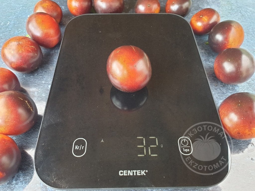 5. Форма и масса плода: форма плодов томата Палка синяя округлая, ровная, гладкая. Масса 30-40 грамм.