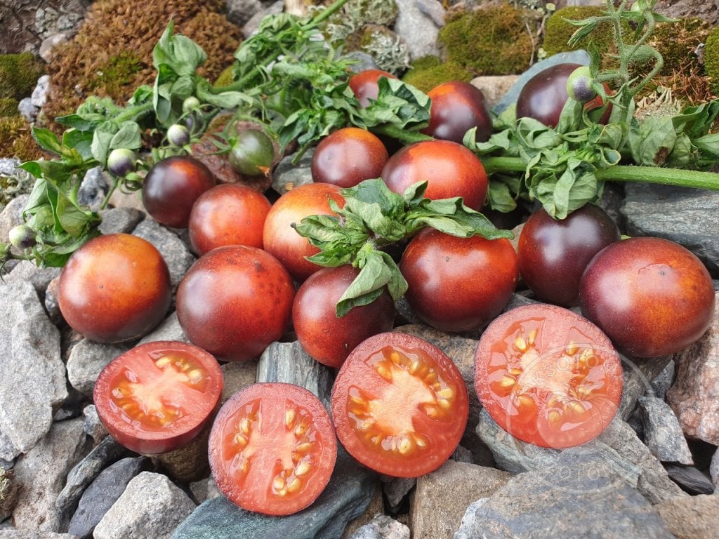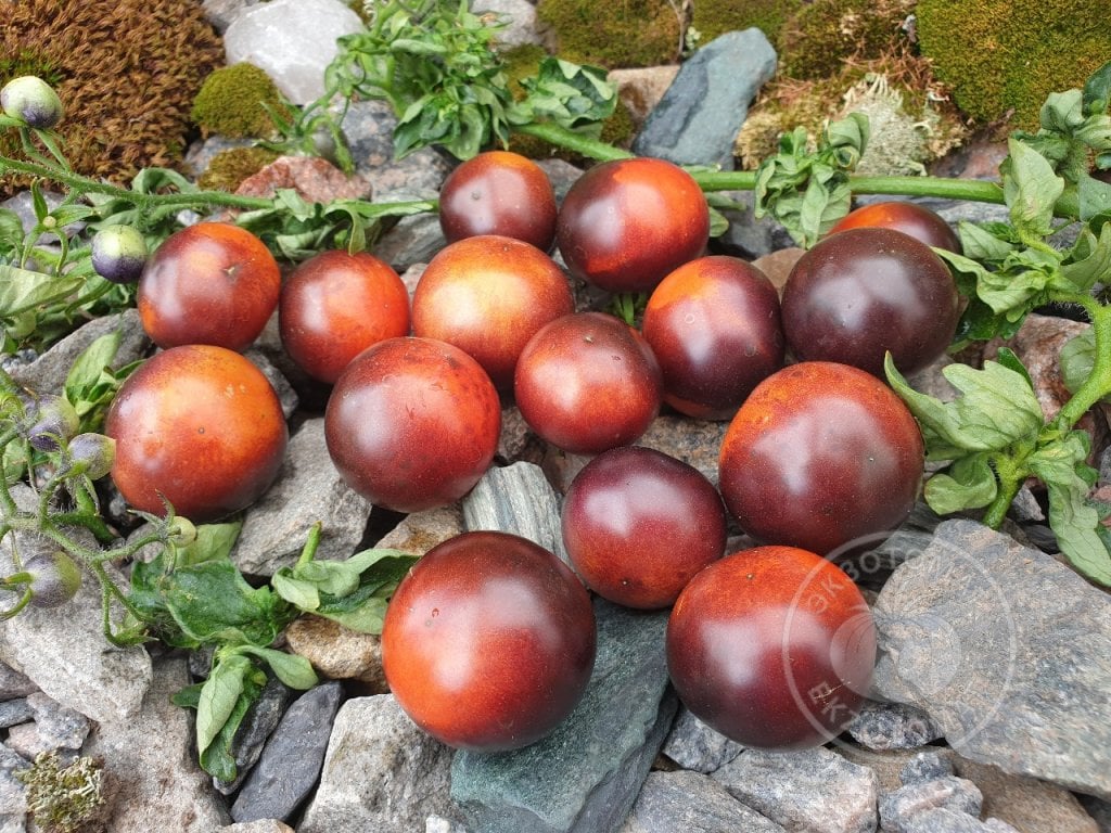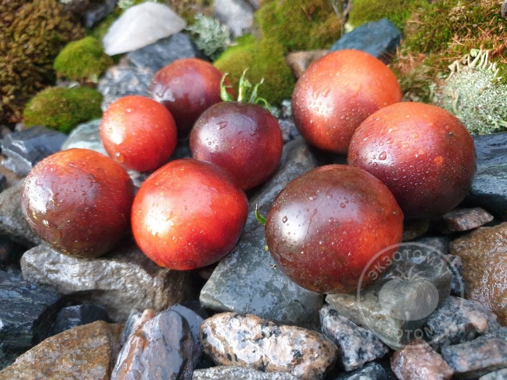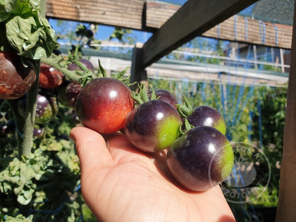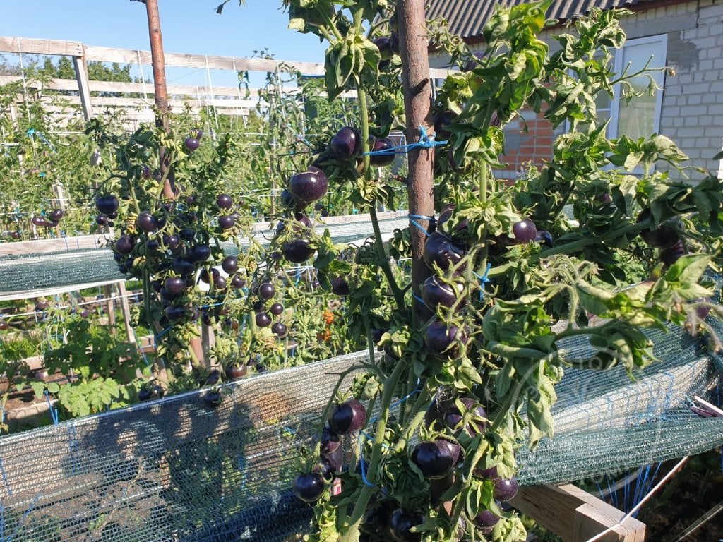 6. Цвет томатов: в технической спелости на удивительном, диковинном кустике, который вообще не похож на томатный висят темно-синие шарики-плоды. Как будто ягодки паслена.