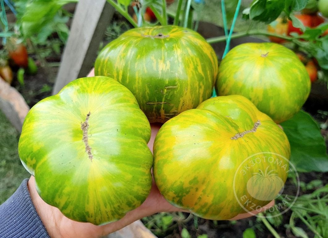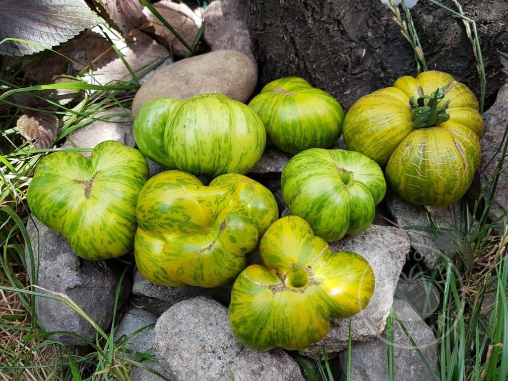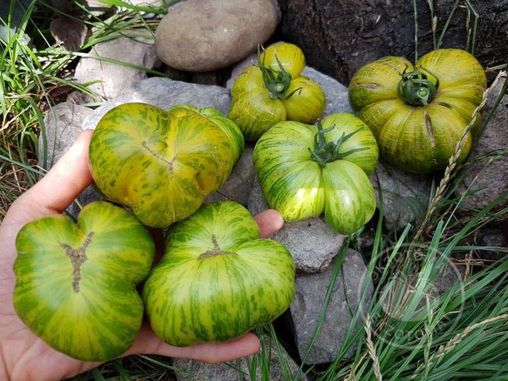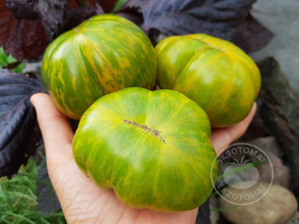 2. История: сорт Glacial Zebra создал селекционер Tom Wagner (TaterMaterSeeds.com, Эверетт, Калифорния, США). Родительскими сортами были Green Zebra и Glacier (Ледник). Green Zebra - представлена Томом в 1983 году. Этот томат зелёный с желтыми полосками. А томат Glacier - это Шведская реликвия, до 1 метра в высоту, красные плоды. Он холодоустойчивый и ранний. В итоге, сорт Glacial Zebra взяла красоту Грин Зебры и холодоустойчивость Ледника.